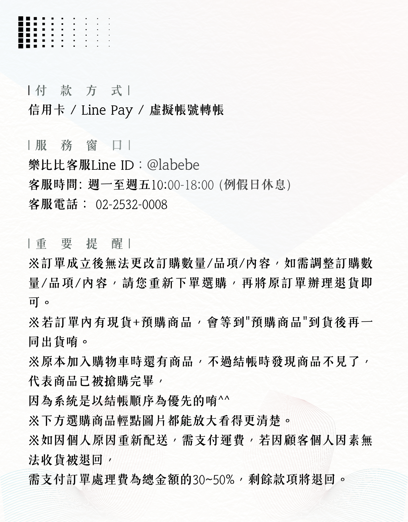 ▍" 預購商品" 完成訂單後 10-14個工作日內(不含假日)完成出貨。